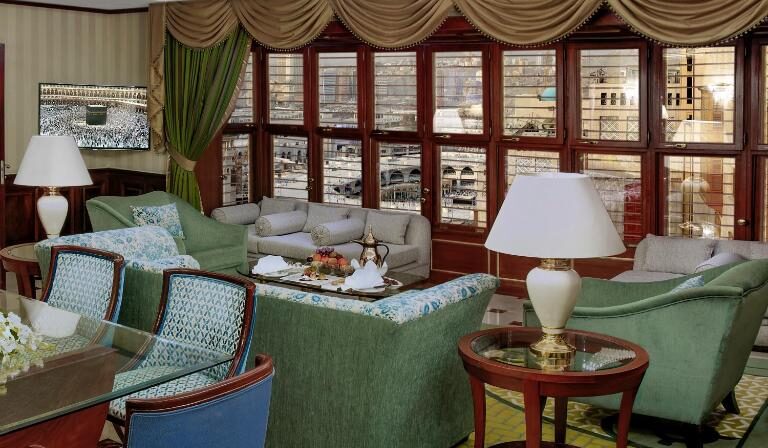 يضم الفندق مركز تسوق واسع يحتوي على 450 متجرًا شهيرًا وقاعة لتناول الطعام، مما يمنح الضيوف تجربة تسوق فريدة. تقع معالم مكة الشهيرة مثل الكعبة المشرفة وبئر زمزم بالقرب من الفندق، بينما تبعد الأماكن المقدسة الأخرى مسافة أقل من 8 كم.