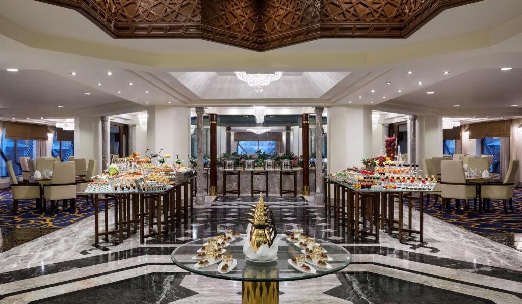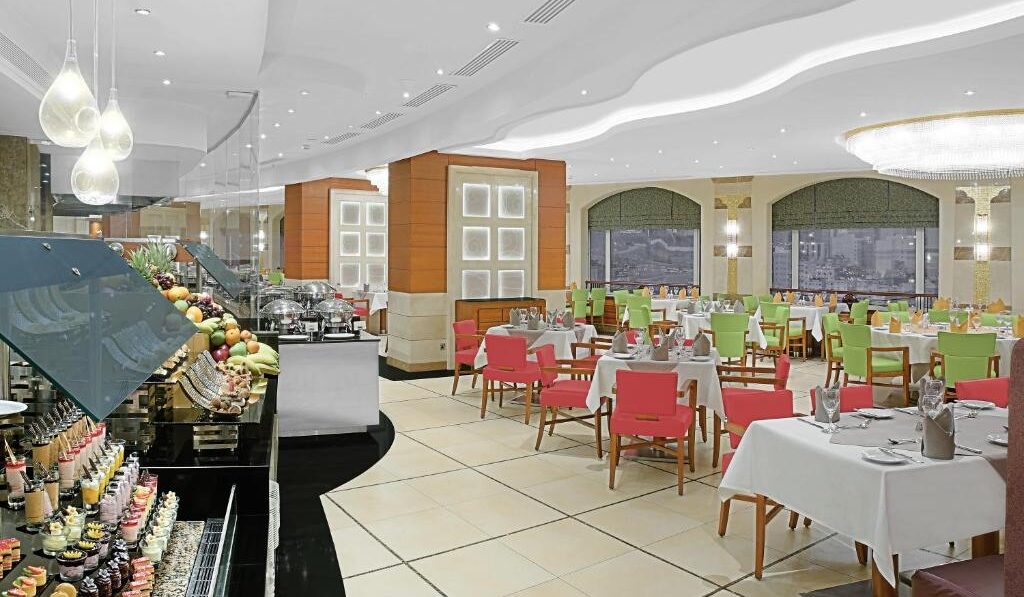 يقدم الفندق خيارات طعام متنوعة، حيث يمكن للضيوف الاستمتاع بالمأكولات العربية الأصيلة في مطعم Al Fayhaa، أو تجربة الأطباق العالمية في مطعم Lagend. يمكن أيضًا الاسترخاء مع القهوة العربية في مقهى Jasmin، أو الاستفادة من جلسات المساج العلاجي للقدمين في مركز ريفليكسولوجي الصحي.